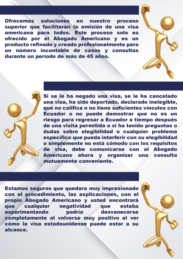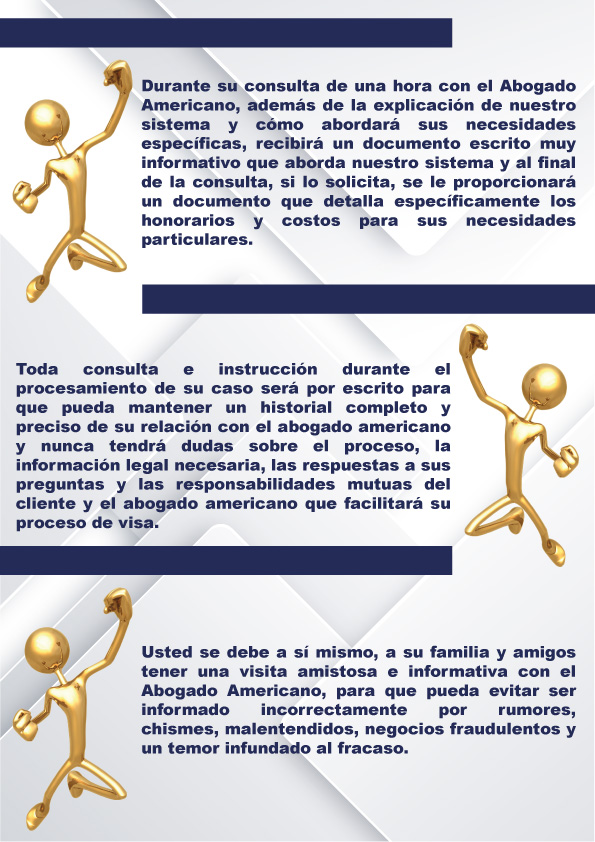 La variedad de problemas, frustraciones e inquietudes que el Abogado ha resuelto bien, ejecuta la gama de situaciones imaginables. No importa la dificultad, él está al día con los requisitos legales, políticas e información especial, así bien preparado para ofrecer la mejor posibilidad de éxito y probablemente la única posibilidad de éxito, por medio de un procedimiento bien transparente, honesto, correcto, en conformidad con los requisitos y comparativamente económico. |